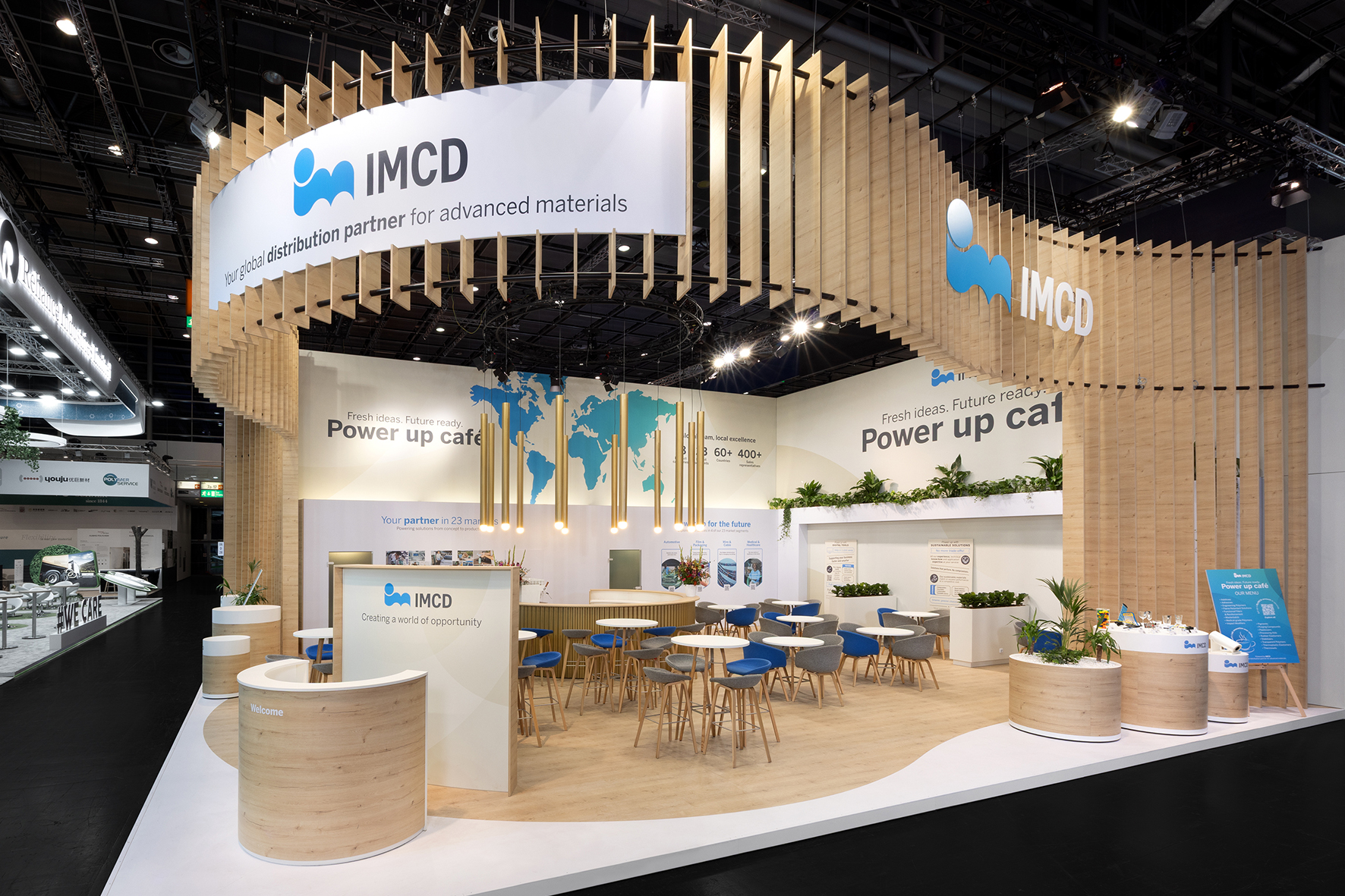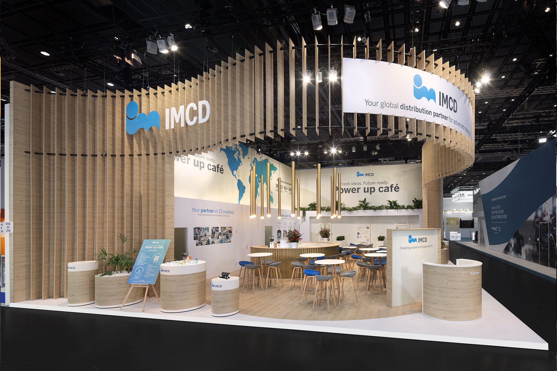 Through a carefully thought-out design, high-quality finishes, and sustainable materials, the IMCD concept was brought to life. The Power Up Café, created for IMCD, offers an inviting and welcoming environment where customers can feel at home, engage with the brand, and experience IMCD’s commitment to quality and sustainability firsthand.